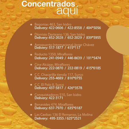 - Somos la juguería que siempre ha estado aquí, donde siempre te has tomado los mejores jugos. Somos también una empresa peruana, familiar, en la que te sentirás bien, y todo lo que pidas será saludable, no solo para el cuerpo sino para el espíritu.