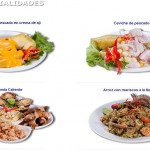 • Tiradito de pescado en crema de ají, Ceviche de pescado, Ronda caliente, Arroz con mariscos a la norteña, Kam Lu Wantan de mariscos, entre otros.